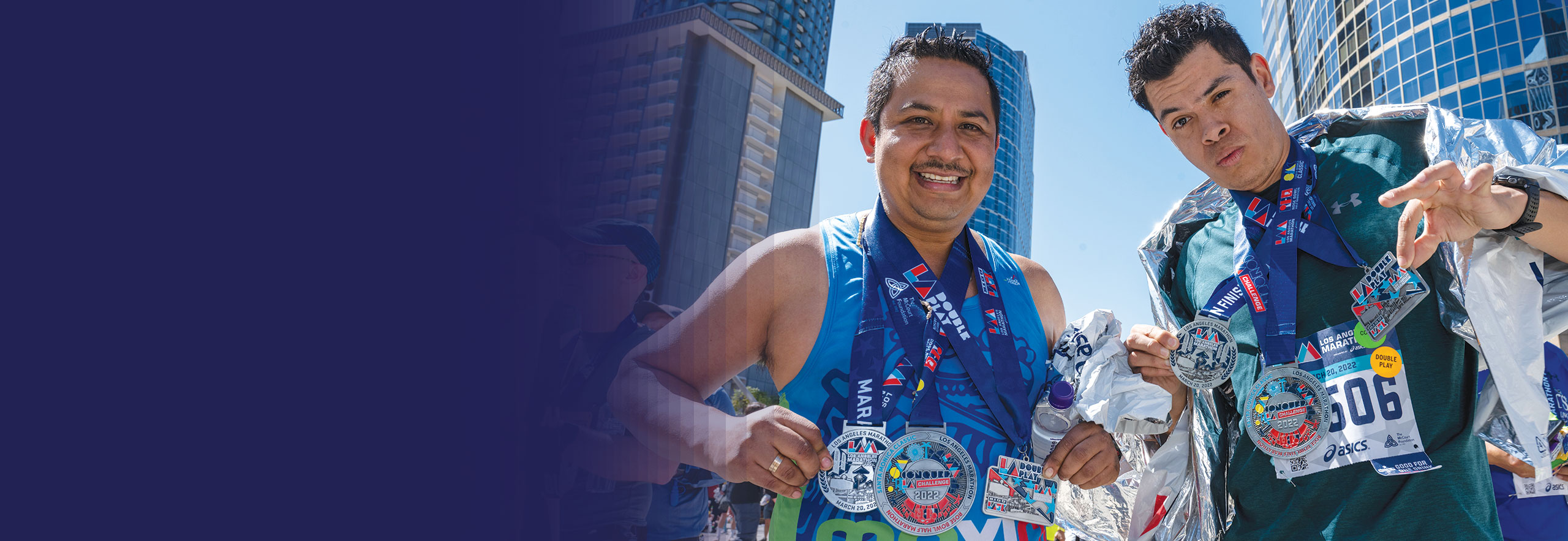 You will pick up the LA Double Play challenge medal in the secure zone after you finish the 2026 ASICS Los Angeles Marathon or Charity Half Marathon.